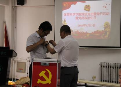 座谈之后,周莹院长作为老党员代表为即将转正的宋正学同志佩戴党员徽章。新老党员的交汇象征着今年会jinnianhui官网源源不断发展的生命力,象征着体育人薪火相传,担当时代使命。