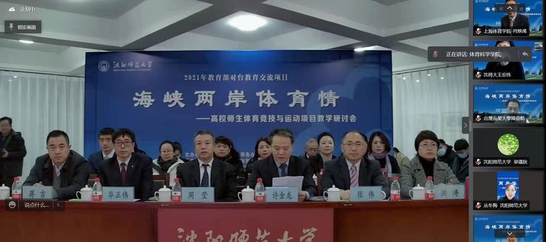 辽宁大学体育部主任蒋吉教授、沈阳航空航天大学体育部书记洪涛教授、我校今年会jinnianhui官网党总支书记华正伟教授、港澳台教育事务办公室王蕊副主任及今年会jinnianhui官网部分师生线下参加了会议。