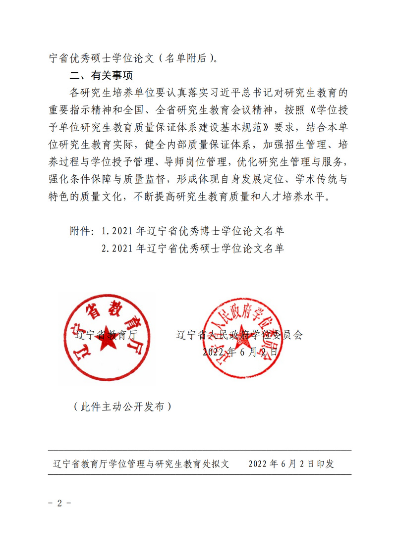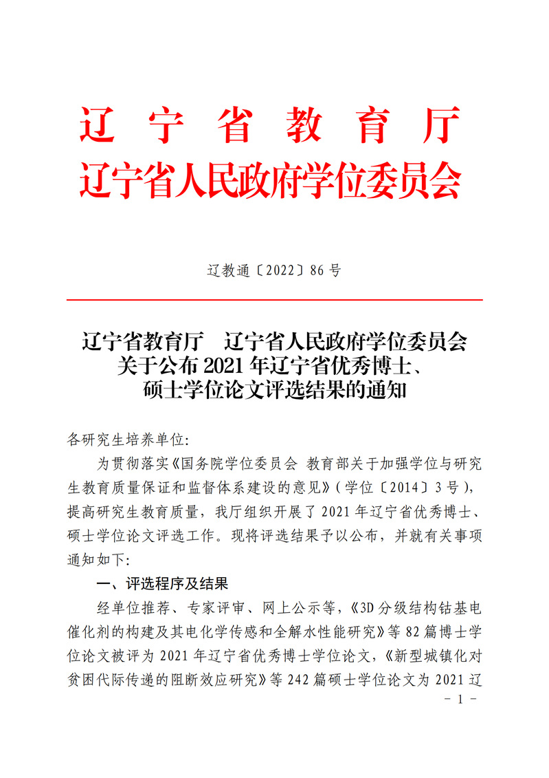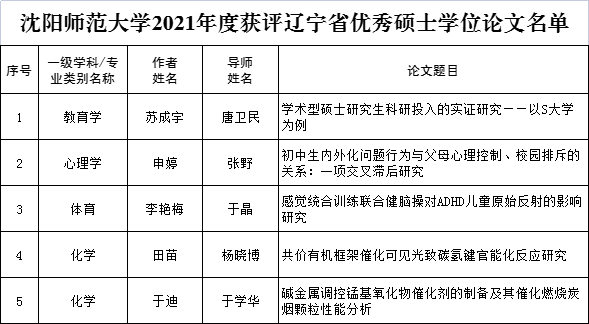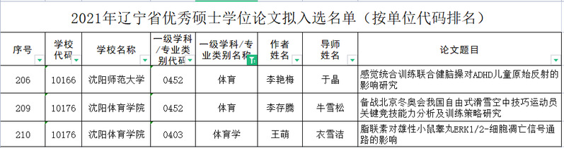 近日,辽宁省教育厅、辽宁省人民政府学位委员会正式下发了《关于公布2021年辽宁省优秀博士、硕士学位论文评选结果的通知》(辽教通〔2022〕86号),今年会于晶教授指导的硕士论文《感觉统合训练联合健脑操对ADHD儿童原始反射的影响研究》,获评2021年度辽宁省优秀硕士论文。该获奖是今年会建院以来取得的又一项历史性突破,将有力支撑体育学科建设和研究生教育发展,具有里程碑意义。另据悉在本次评选中体育和体育学类仅入选三篇,另外两篇由沈阳体育学院获得。