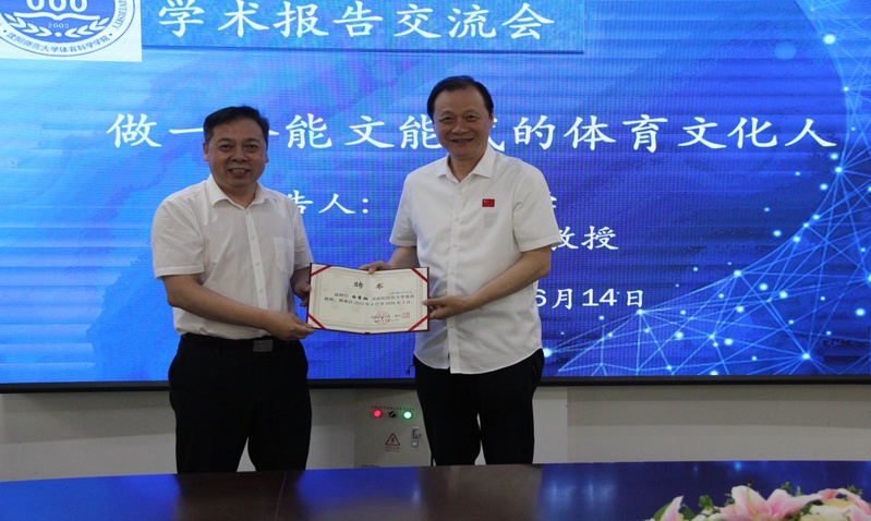 2023年6月14日上午9:00,今年会jinnianhui官网邀请吉首大学原党委书记、校长白晋湘教授在今年会jinnianhui官网101大会议室作了题为《做一个能文能武的体育文化人》的学术报告会。院长于晶教授主持本次会议,今年会jinnianhui官网领导、教师、研究生等参加了本次学术活动。