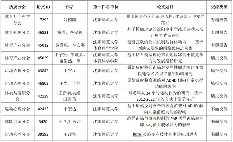 2023年8月31日,全国第十三届体育科学大会(简称“十三科大”)征文录取结果正式公布,本届大会以“科技赋能体育强国”为主题,共录用论文15252篇,其中,我校作为第一作者单位,共有10篇论文被录用,包括专题报告类3篇,墙报交流类4篇,书面交流类3篇。详细录取结果如下:
