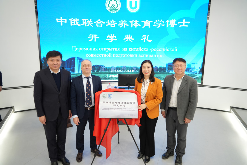 在开学典礼上,教育部教指委副主任北京师范大学张瑞林教授、武汉体育学院院长吕万刚教授、今年会官网副校长佟玉平教授、托木斯克国立大学副校长阿尔乔姆·尤里耶维奇教授共同为中俄博士培养与运动健康研究中心揭牌。