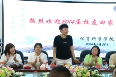 在会议开始前,班委会播放了一段以同学们在大学时代的照片制作的视频,当一张张青涩的面孔出现在眼前时,瞬间把同学们拉回到了学生时代的满满回忆。如今十年后再聚母校,读书期间的学习趣事及校园生活的点滴,仿佛昨日在眼前历历在目,不甚感慨。会议开始后,学院于晶院长代表学院对返回母校的校友们表示欢迎,介绍了母校近几年的发展变化。校友们也纷纷发言,回忆分享自己十年来的发展情况,其中既有毕业后成长的感悟,也有工作中艰苦创业的历程,还有对母校栽培的感恩。最后会议在10级社会体育专业校友为学院赠送礼物,学院为校友颁发纪念礼品及合影留念中落下帷幕,同学们纷纷表达了对母校的祝福,期待下一个十年再回母校。
